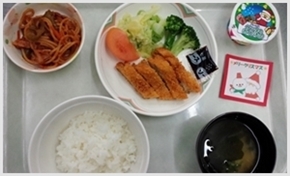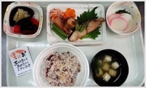 当院では、患者様の病態に応じて主治医の指示のもと、常食、糖尿病食などの食事を一口刻み食、刻み食など食べやすい形態で提供しております。また、年間を通じて季節の行事食も提供しており、入院中の食事が患者様の楽しみとなるよう心がけております。